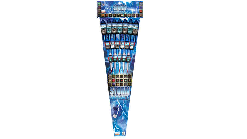 Diese Raketen kommen aus dem Hause Klasek. Storm Rocket hat 18 Raketen in der Kategorie F3. Mit 66,11 Gramm NEM und 18 verschiedenen Effekten etwas ganz feines.