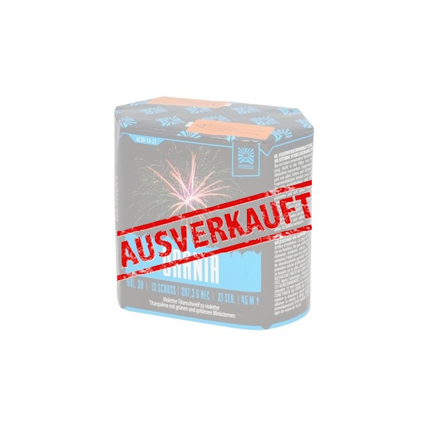 Vom Hersteller Argento kommt diese Batterie Urania. Sie hat 30 mm Kaliber und 287 Gramm NEM. Diese Batterie braucht 21 Sekunden mit 13 Schuss.